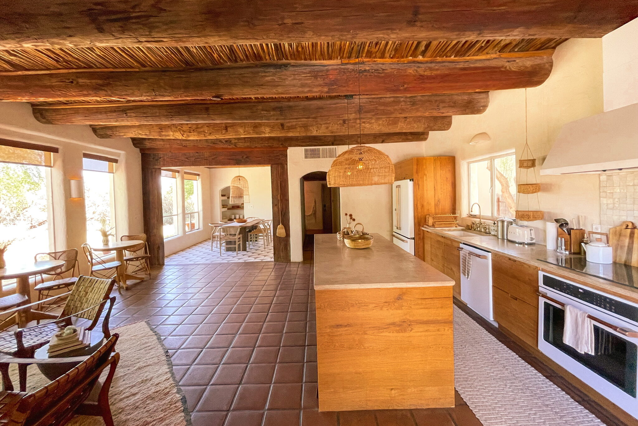 This space, now our chef’s style kitchen with custom cabinetry, went from being a blank slate (with great bones- those reclaimed power pole & saguaro rib ceilings! that light!) to becoming the perfect spot to enjoy a meal with friends.
