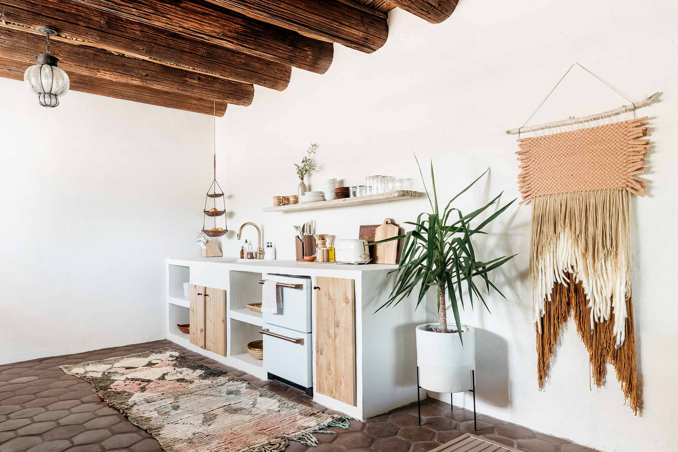 Ocotillo is our family suite. It’s a two-story suite with a queen sized bed downstairs, and a king sized bed upstairs. Pictured below is the space that became the Ocotillo kitchenette!