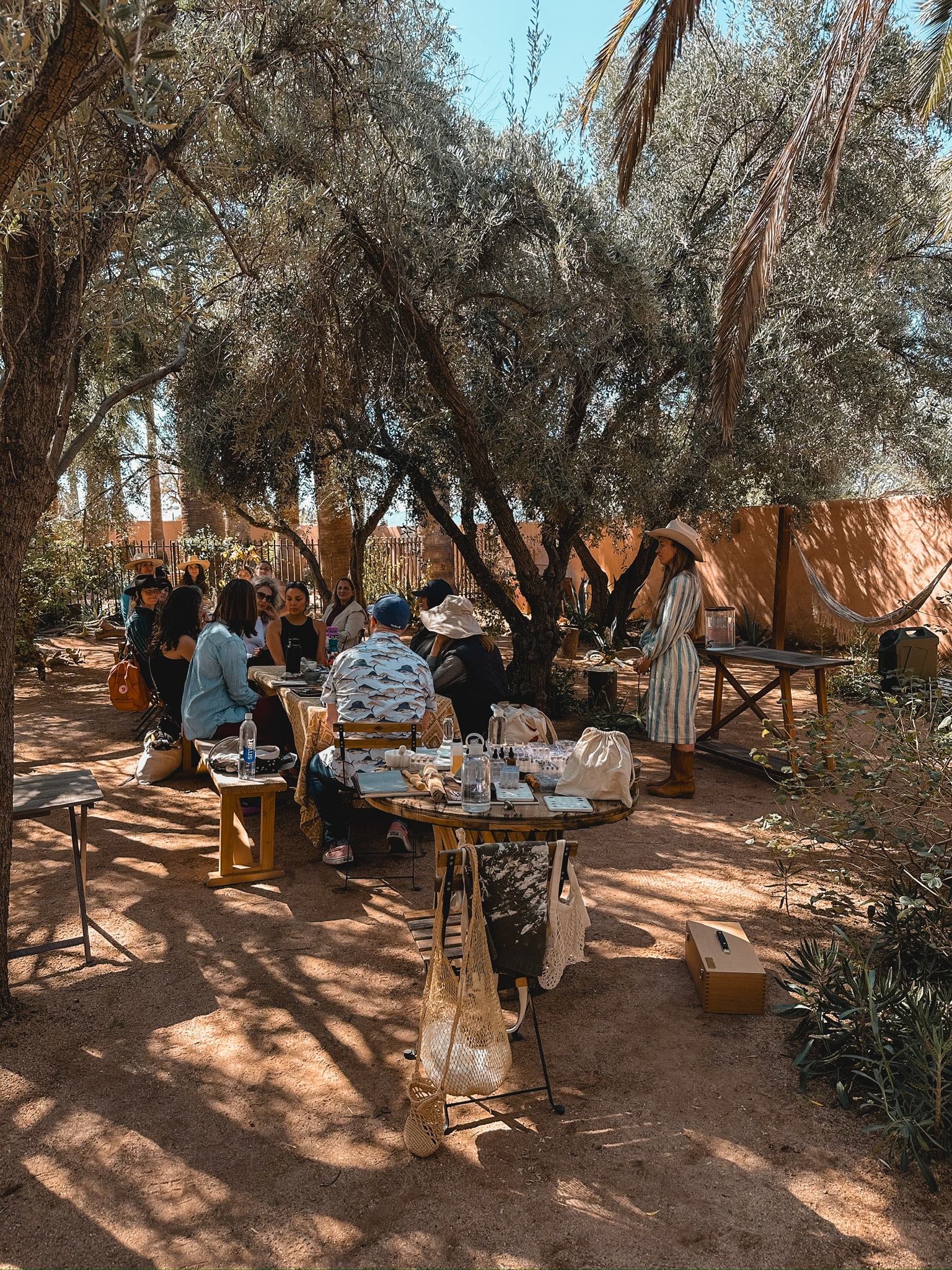 Workshops at JTH Tucson happen outdoors in our front garden olive grove. Your group will also have daytime use of our Creosote studio suite for staging and bathroom purposes. Creosote has a full kitchen and bathroom, and is located conveniently near to our workshop space.