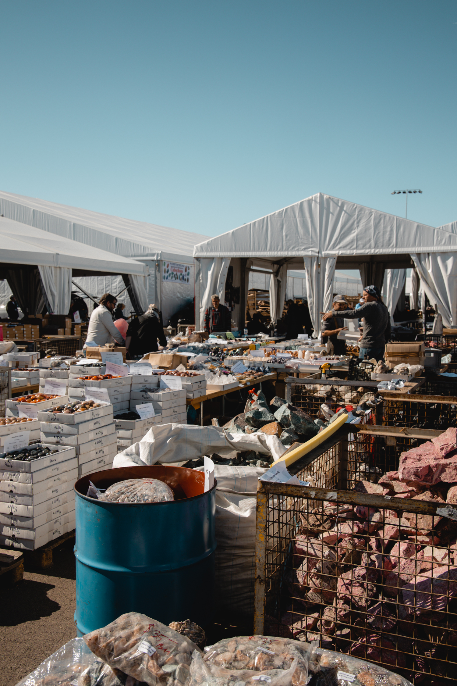 Tucson’s annual Gem and Mineral Showcase is an incredible and unique experience. Whether you’re a seasoned professional, shopping for your home, or just want to admire museum quality specimens from around the world this collection of shows has something for everyone. Tucson Gem Show consists of dozens of unique shows at different venues all over Tucson. It’s hard to capture the magnitude of it—it takes over the whole city. Gems overflow in tent filled parking lots and even out of motel rooms. There’s also so much more than just gems & minerals. It covers other natural materials like carved wood, baskets and fibers as well. This makes visiting really interesting as you can choose the shows that cater to your own personal interests. But it can also feel a bit overwhelming to figure it all out!