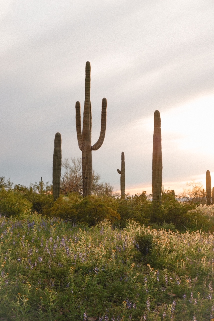 There are five different hiking trails in Picacho Peak State Park, ranging from quick & easy to technically difficult. If you only have time for one, we recommend Sunset Vista Trail. Sunset Vista is about three miles long in each direction. The first two miles are rated moderate. There’s a bit of loose rocks making the trail slippery in some areas, and it does have some hills to climb up and down. The last mile of trail becomes quite difficult as you ascend the peak using steel cables. Luckily, there’s plenty of fantastic views along the way even if you don’t reach the summit. We even spotted some wild horses grazing amongst the wildflowers way out in the valley below us. Walk as long as you feel comfortable and then turn back.