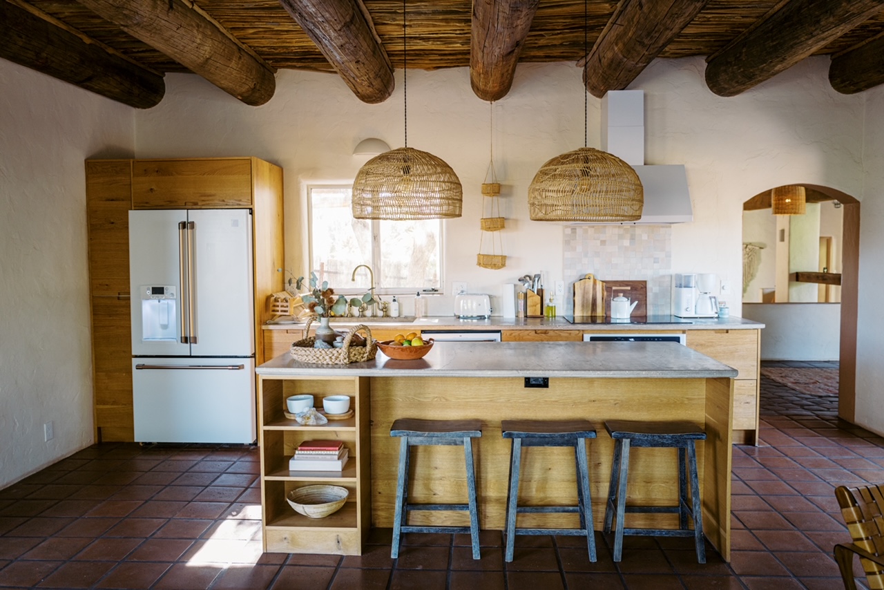 The main kitchen has all of the cookware a chef would need to prepare a world class dinner. (And we do offer an option to book a meal with a private chef here). Our Agave and Creosote Suites both offer a full kitchen, and our other suites have kitchenettes. All of our guests are also welcome to use our main kitchen which is also where the ice maker can be found.