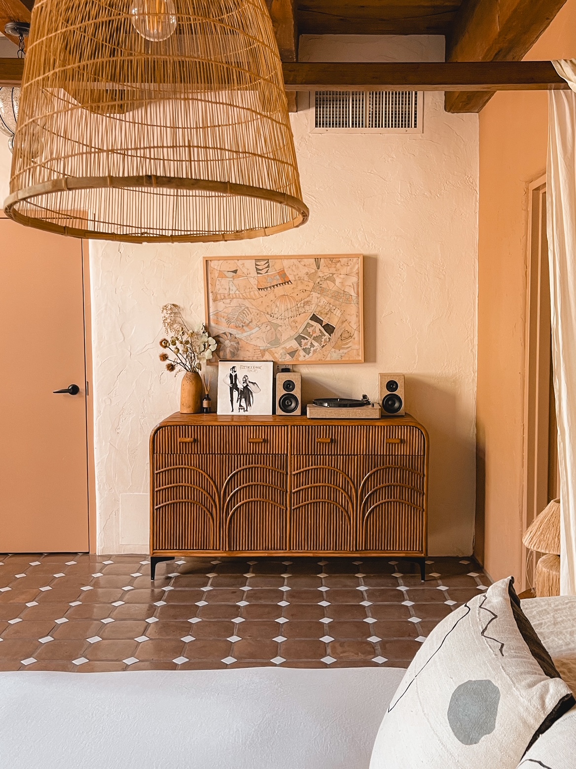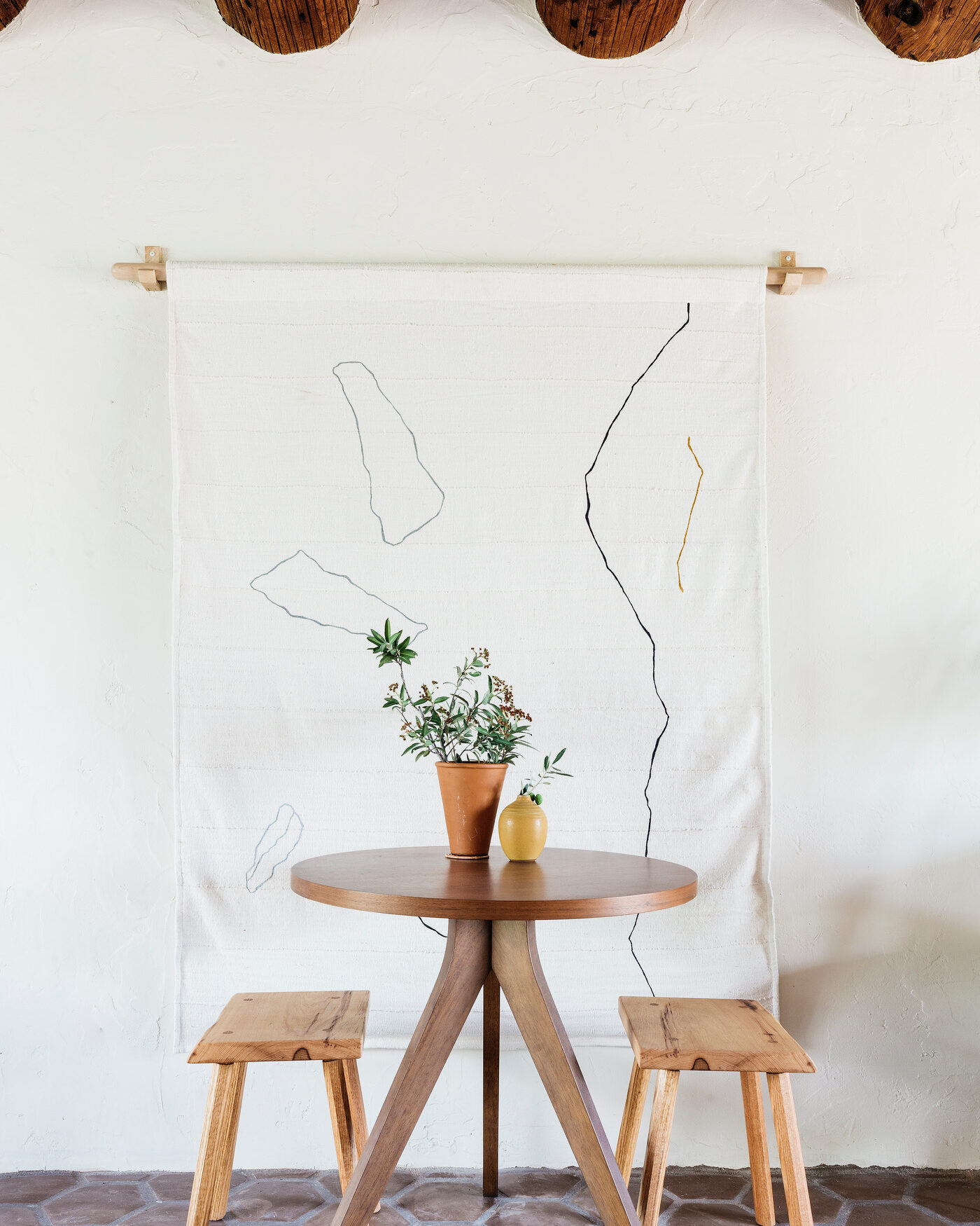 In our Saguaro suite, there’s a wall hanging and pillow designed by Kuddkrig Home.