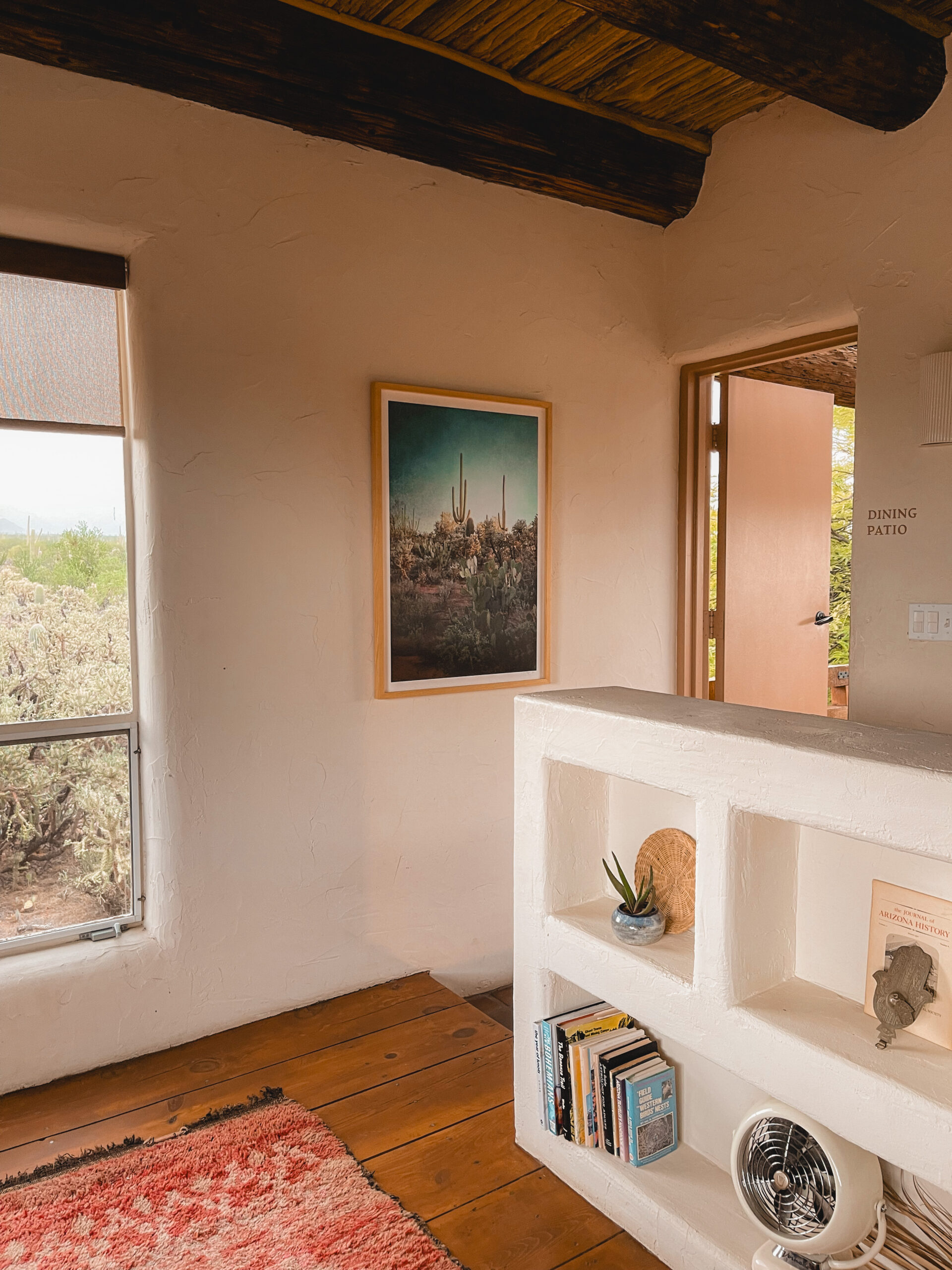 Throughout the inn we’ve hung paintings from artists we admire. A couple of pieces that we love are this scene inspired by our Saguaro Suite by local artist Scout Dunbar, and this large scale piece in our communal living room that was painted on-site by Julia Rosenthal.