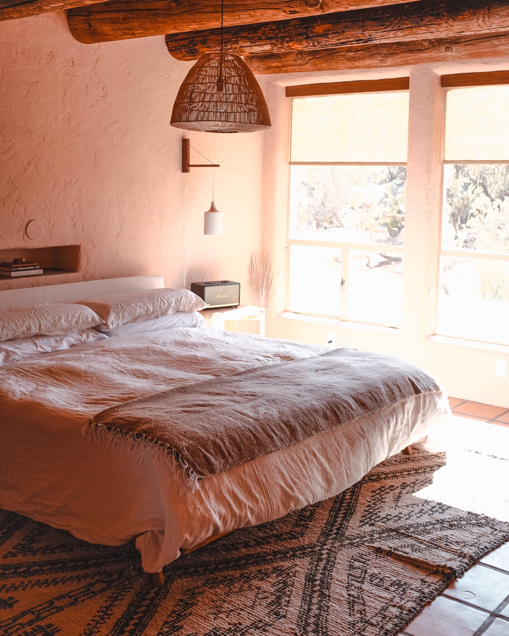 Throughout the inn, fiber art from skilled artisans and small shops create a cozy vibe. Our vintage Moroccan rugs are sourced by Berber artisan and “rug addict” Taib Lotfi of Soukie Modern.