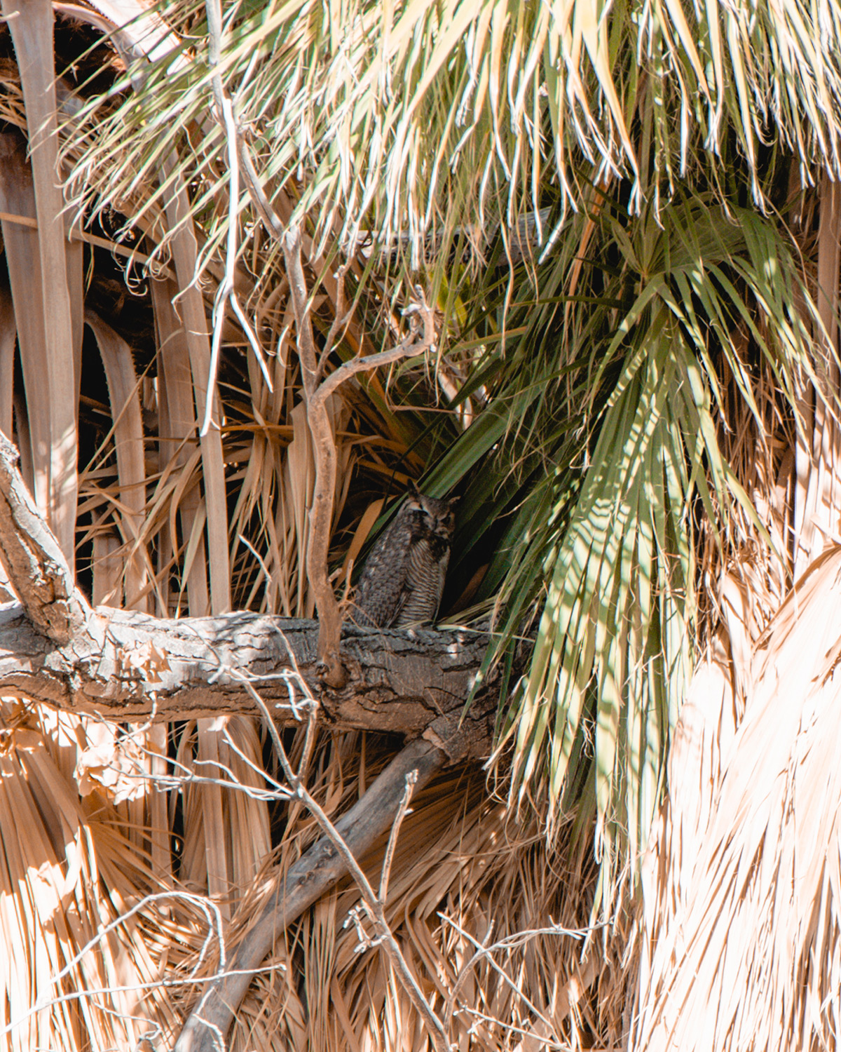 The Cottonwood Springs Trail is a short, easy stroll that takes you to a cottonwood and fan palm tree oasis. This natural, spring fed water source is a vital watering hole for desert wildlife, so it’s a great place to sit quietly in the shade of the trees and observe wildlife. Keep your eye out for lizards, birds, jackrabbits, coyotes, and even big horn sheep—we spotted a great horned owl in one of the palms! Remember to pay attention to signage and respect closed off areas in order to protect the fragile ecosystem and give animals unrestricted access.