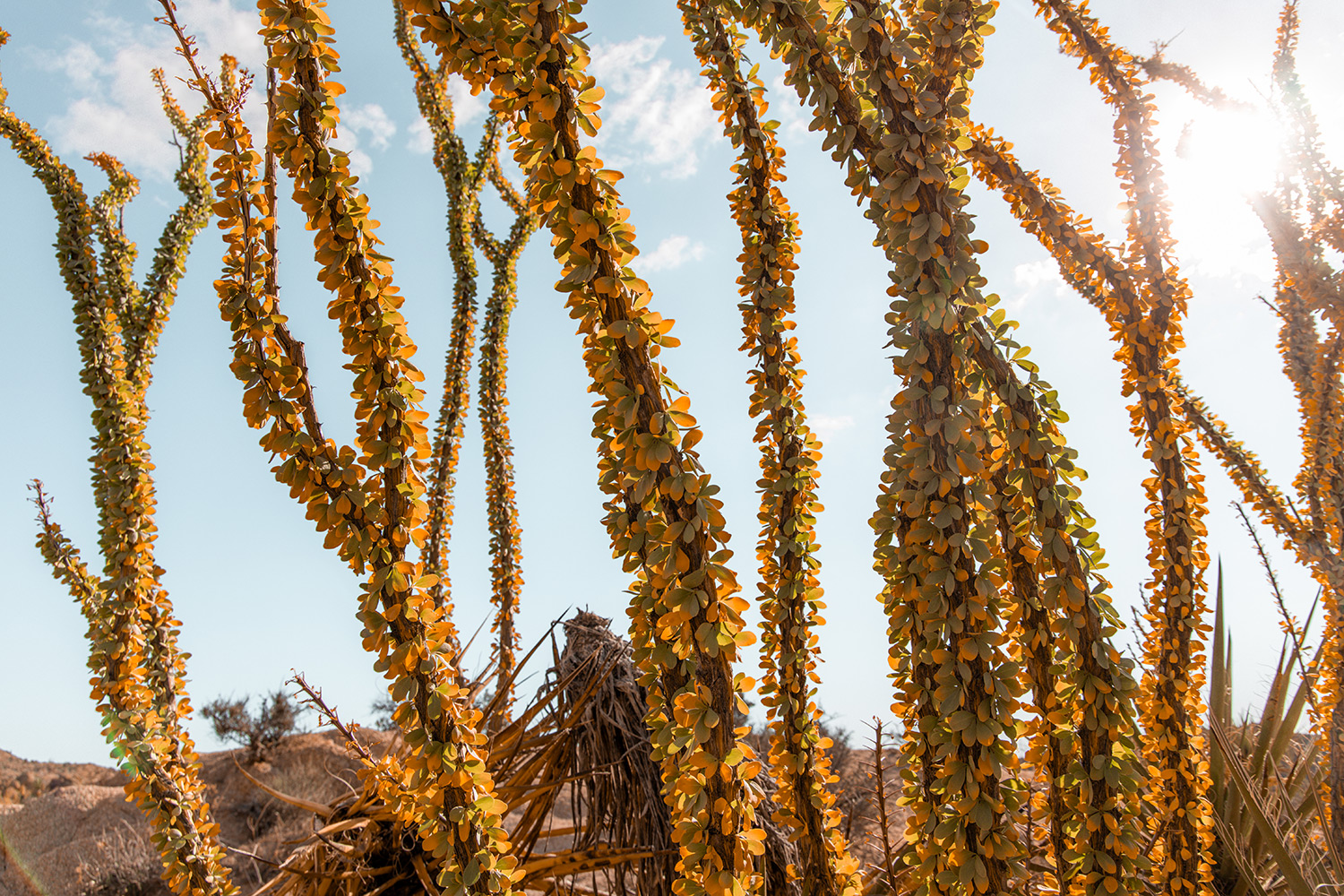 This area is known for its spring wildflowers, and our fall visit impressed us with the desert’s version of “fall foliage”. The leaves were starting to change color on the ocotillos, and a few fall wildflowers dotted the trail.