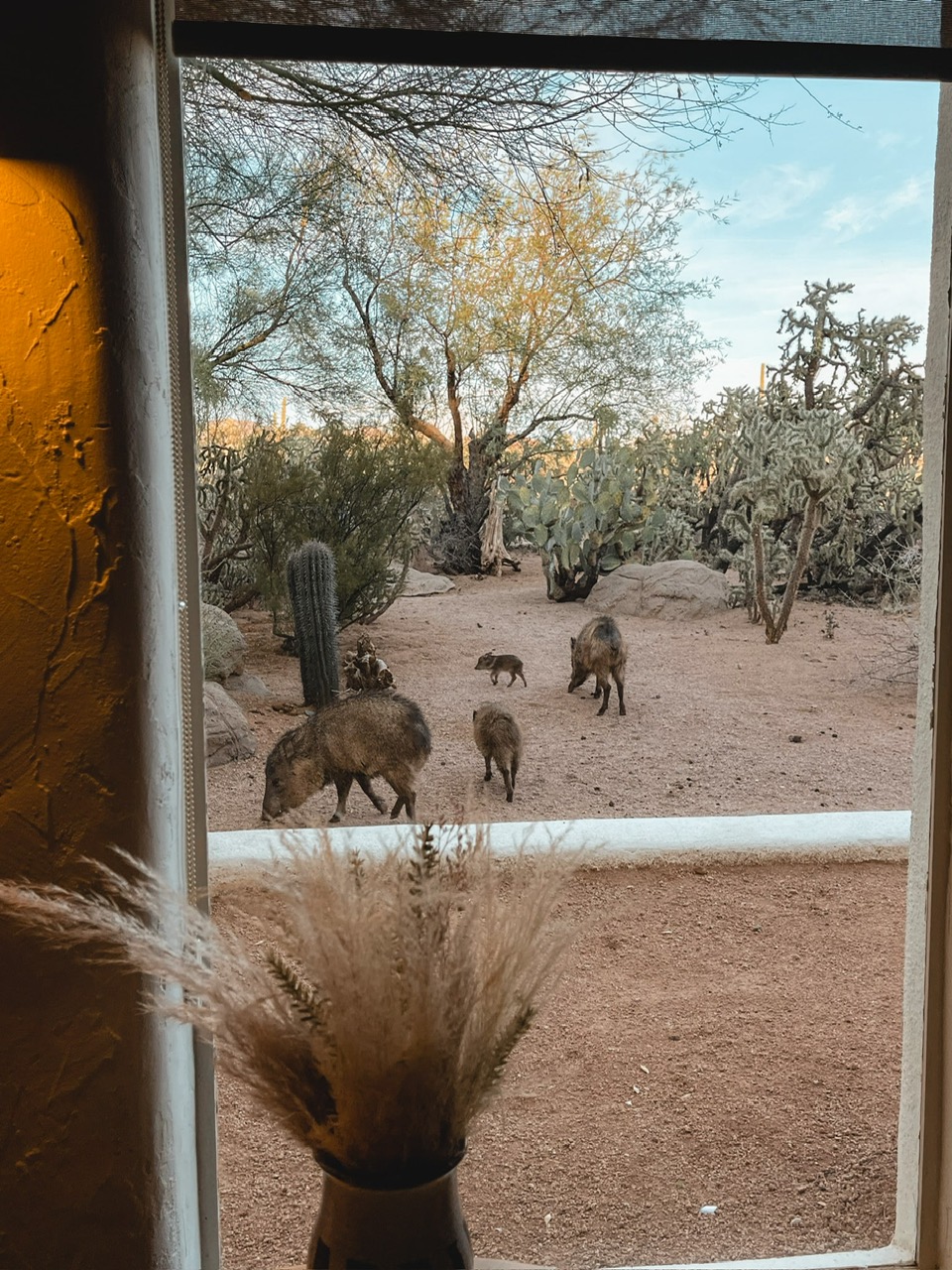 We frequently see javelina, mule deer, coyotes, owls, roadrunners, quails, cactus wrens, jackrabbits and lizards along with the occasional snake around the inn’s property. More elusive visitors include desert tortoises, kit foxes and bobcats. We’ve yet to spot a Gila monster, coatimundi, ringtail or elf owl on our grounds, but they’re all native to the Sonoran desert- so if you visit keep your eye out for them too!