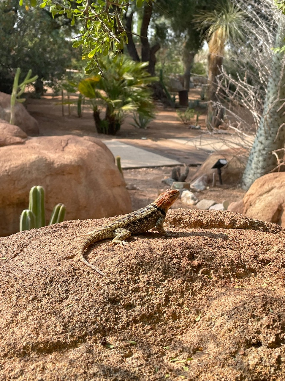 In our experience, the rattlesnakes here are slow moving and shy of people, and we’ve never had one venture indoors. They do occasionally make their way from the wild desert around us into our gardens, and in those cases our staff is trained to safely relocate them. If you’re visiting during snake season (non-winter months), it is important to be mindful—watch where you step and stay on designated trails.