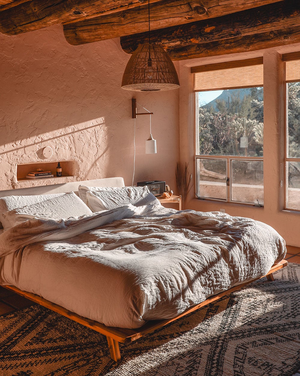 Cholla Room would be a great option if your workshop involves movement as it’s a staircase away from our yoga room which is always stocked with plenty of yoga mats and yoga blankets. The dedicated bathroom for Cholla is detached, just down the hall and easily accessible. Cholla has a private car port and is complete with a private patio both paved and unpaved.