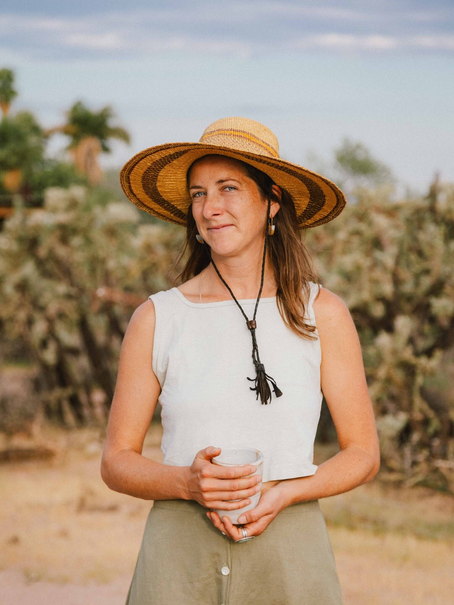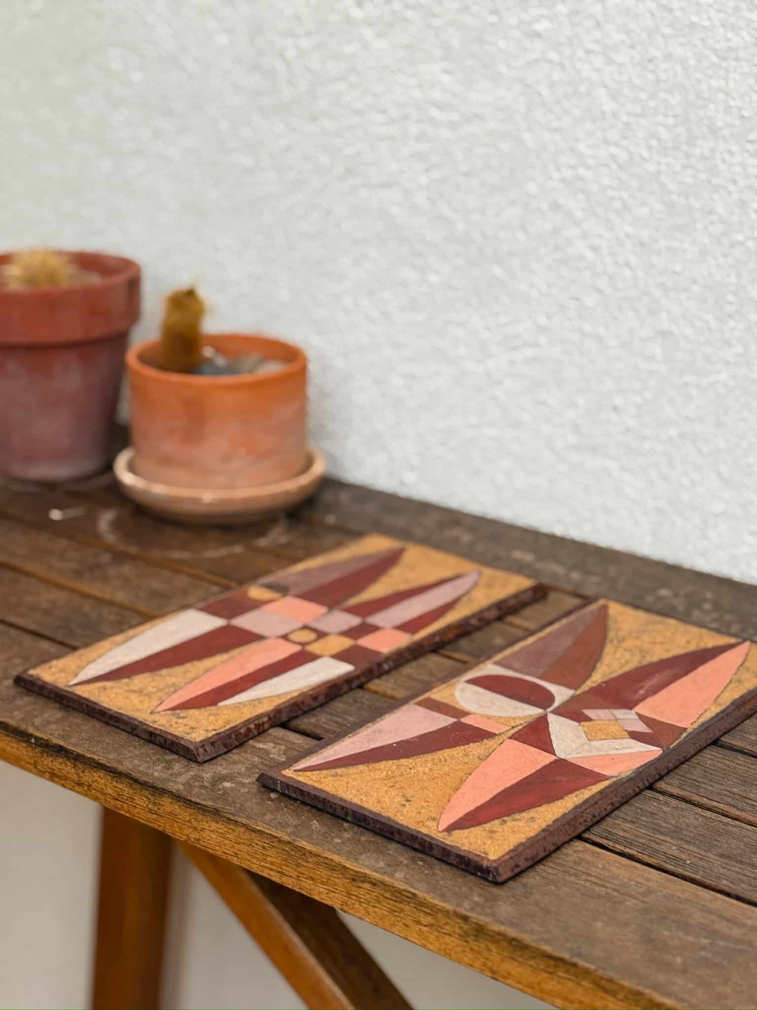 Lisa Rooney is a multi-disciplinary artist who works with ceramics, murals, 2D, earth works, jewelry, and photo. You can find more of her work here. She spent her time at the inn creating ceramics using the natural pigments we were surrounded by here in the Sonoran Desert. We loved seeing her creating in multiple places around the inn: the Cholla Room’s private patio, next to the communal fire pit and in the dining room in the main kitchen!